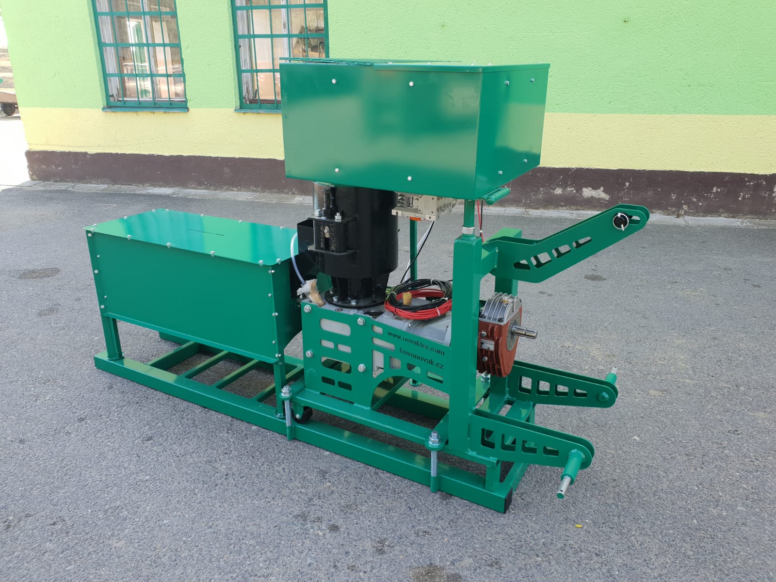 Součástí granulátoru je dávkovací násypka, vlhčení včetně čerpadla, kardan. Pro závěs traktoru kat. I. a II., traktor 25 kW.