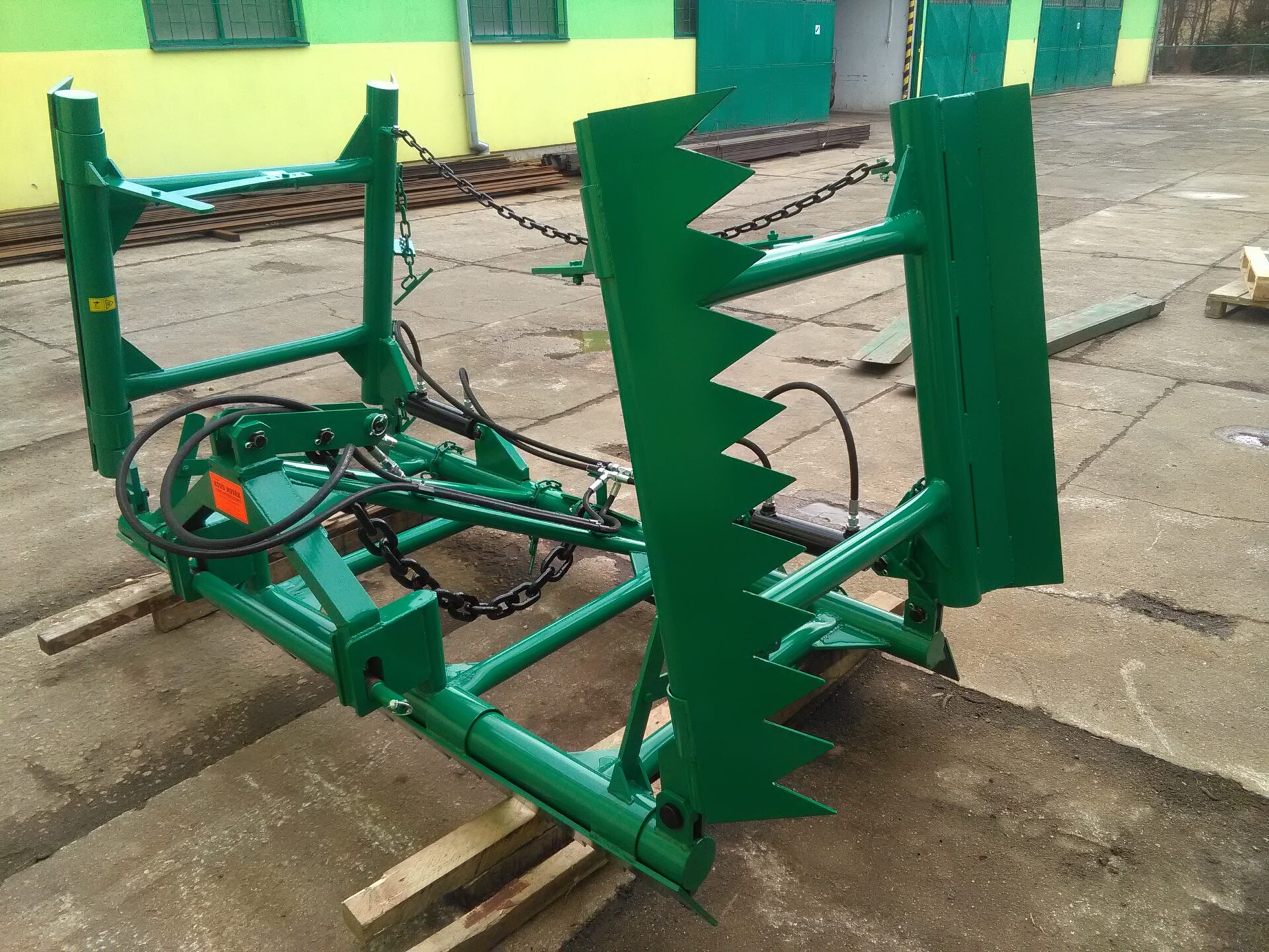 Přední břit je zubatý, stavitelný na táhlech do šesti poloh po 15 stupních. Zadní břit je hladký, přivařený v ideálním sklonu na trubkový rám smyku.