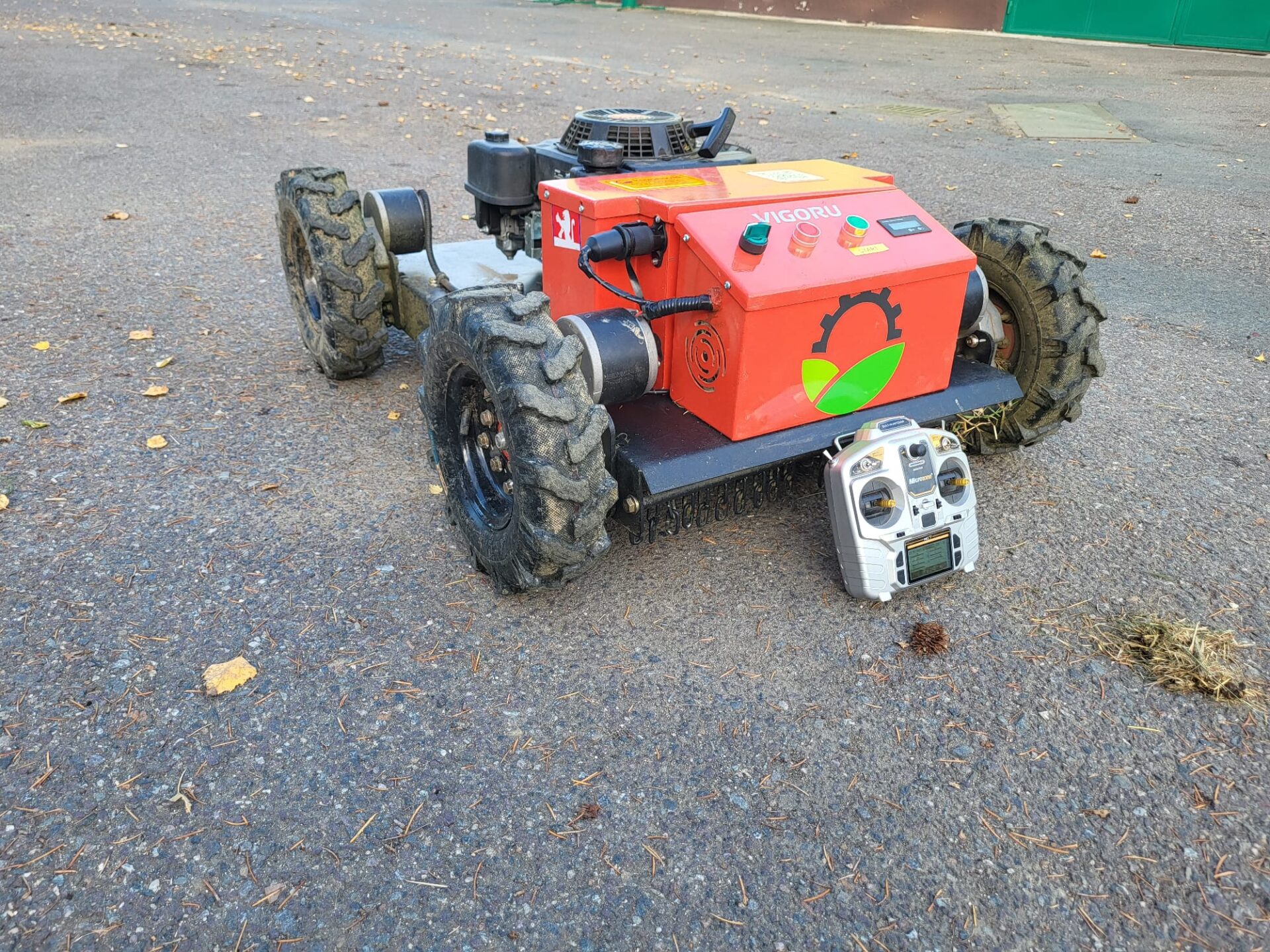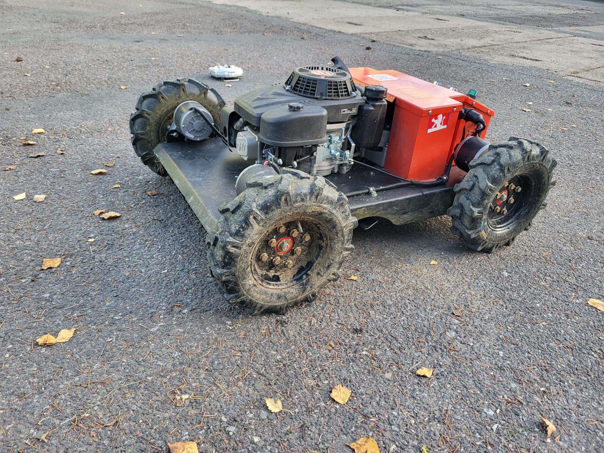 Čtyřtaktní benzínová sekačka na trávu s elektropohonem kol a dálkovým ovládáním. Sekačka je určena pro úzký a složitý terén, strmé svahy, okraje silnic, břehy řek, sady, vinice, hřiště, zahrady atd.