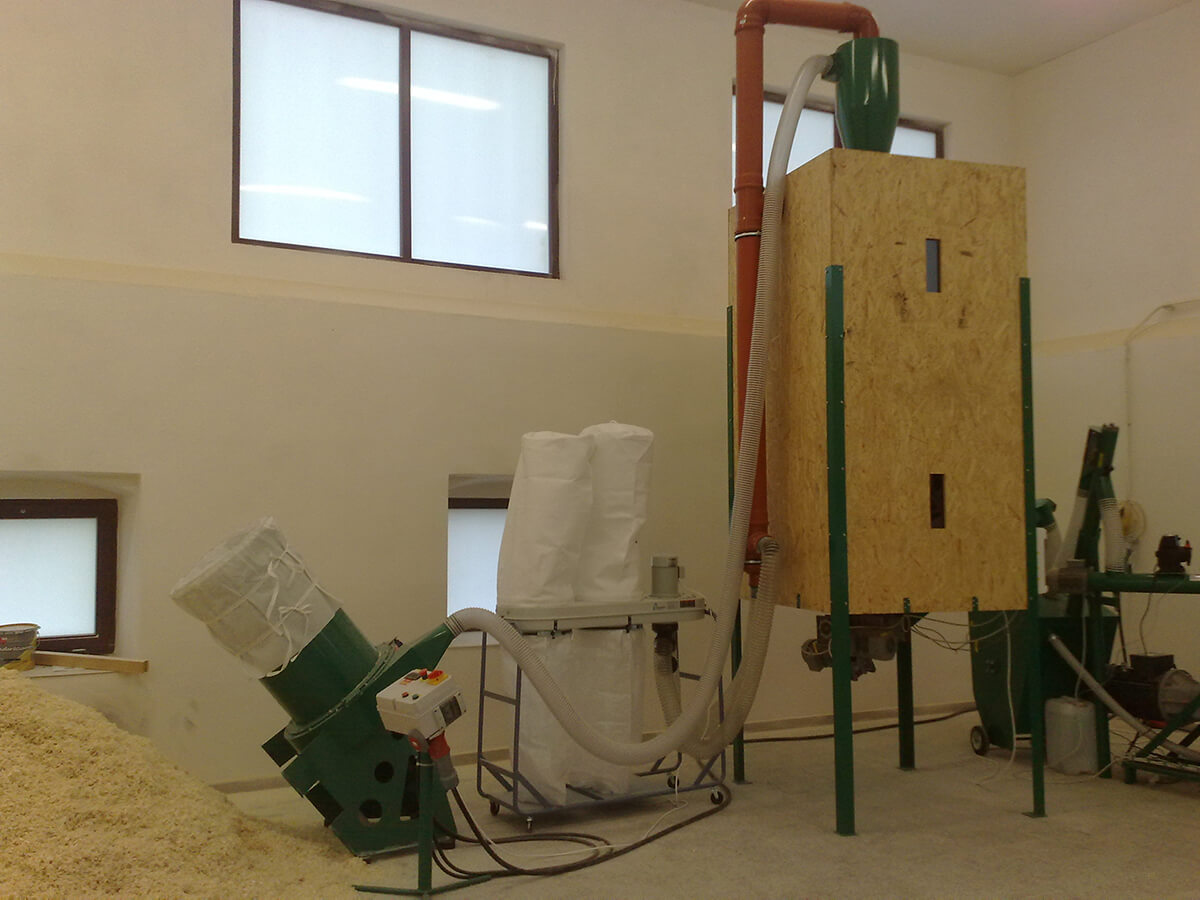 Řezací šrotovník typ RS je určen k řezání a drcení (šrotování) slámy pro výrobu pelet a také k řezání a drcení (šrotování) slámy na výrobu briket. Vlastním důmyslným provedením rotoru řezacího šrotovníku, je sláma řezacími noži najemno pořezána, speciálními kladivy přes síta pošrotována a vynášecími lopatkami dopravována mimo šrotovník do vzdálenosti až 6m.Dávkování slámy do komory šrotovníku se provádí ručně vidlemi.