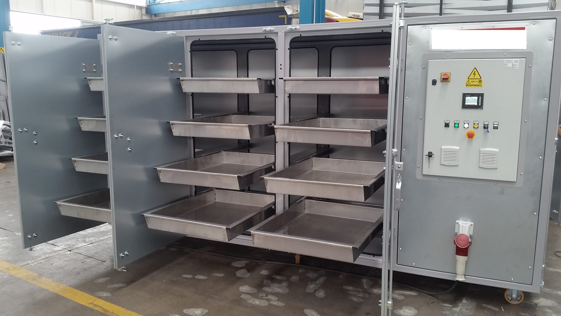Sušička je dodávána v konfiguraci typu plug and play s elektrorozvaděčem (380 V) a PLC, je tedy připravena ihned k provozu.
